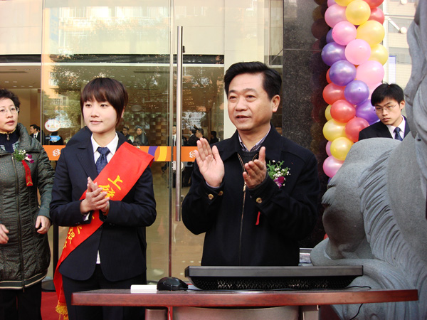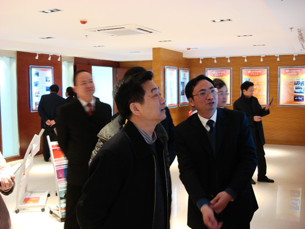 儀式結束后,陳平常務(wù)副市長(cháng)、胡德海書(shū)記等領(lǐng)導在夏勤儉董事長(cháng)的陪同下興致勃勃地參觀(guān)了上饒市商業(yè)銀行辦公大樓。